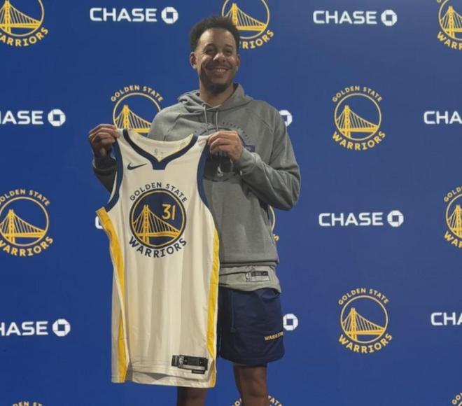 塞斯·库里也在新闻发布会上展示了自己的勇士31号球衣,并且开玩笑表示,自己想过跟哥哥购买30号球衣,但哥哥说自己不缺钱。