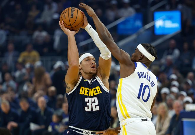 掘金休赛期引进卡约、瓦兰丘纳斯与小哈达威,并签回昔日总冠军功臣布鲁斯-布朗,勇士本场缺少穆迪、梅尔顿与图希。首节开局勇士内外开花10-0领先,其中库里与波杰姆斯基各中一记三分,约基奇、穆雷与布劳恩携手打出12-0攻势反超比分。勇士追到14-14,布劳恩暴扣与戈登三分命中,勇士连追4分,戈登两罚全中与再中两记三分,巴特勒一人连得9分,瓦兰丘纳斯与穆雷各得2分,首节结束勇士27-31落后掘金。首节勇士三分13中3,掘金三分9中3,戈登三分3中3得到11分。