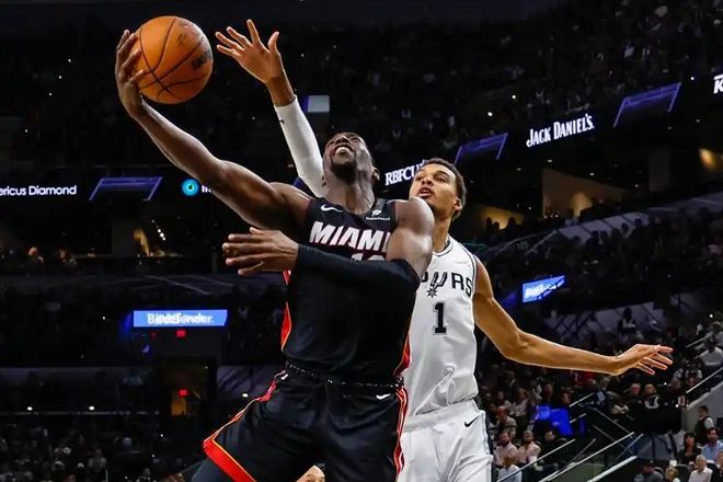 虽然目前数据样本还不够多,但截至目前来看,文班亚马今年的表现,提升太明显了。今天击败热火的比赛,文班亚马继续强势表现,23投10中,三分球5投1中,罚球8罚6中,狂砍27分18篮板6助攻1抢断5盖帽,这数据,25+15+5+5帽,太吓人了。可以说,今天他对位5年1.63亿中锋阿德巴约,把这位“小魔兽”打爆了,后者27投12中,三分球13投4中,几乎一半的出手都飘在外线,很惧怕跟文班亚马到内线硬刚。